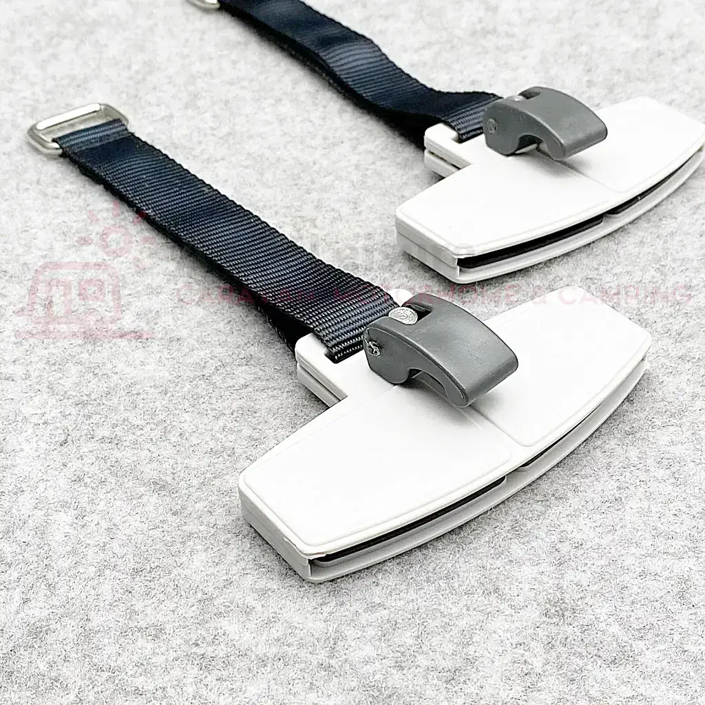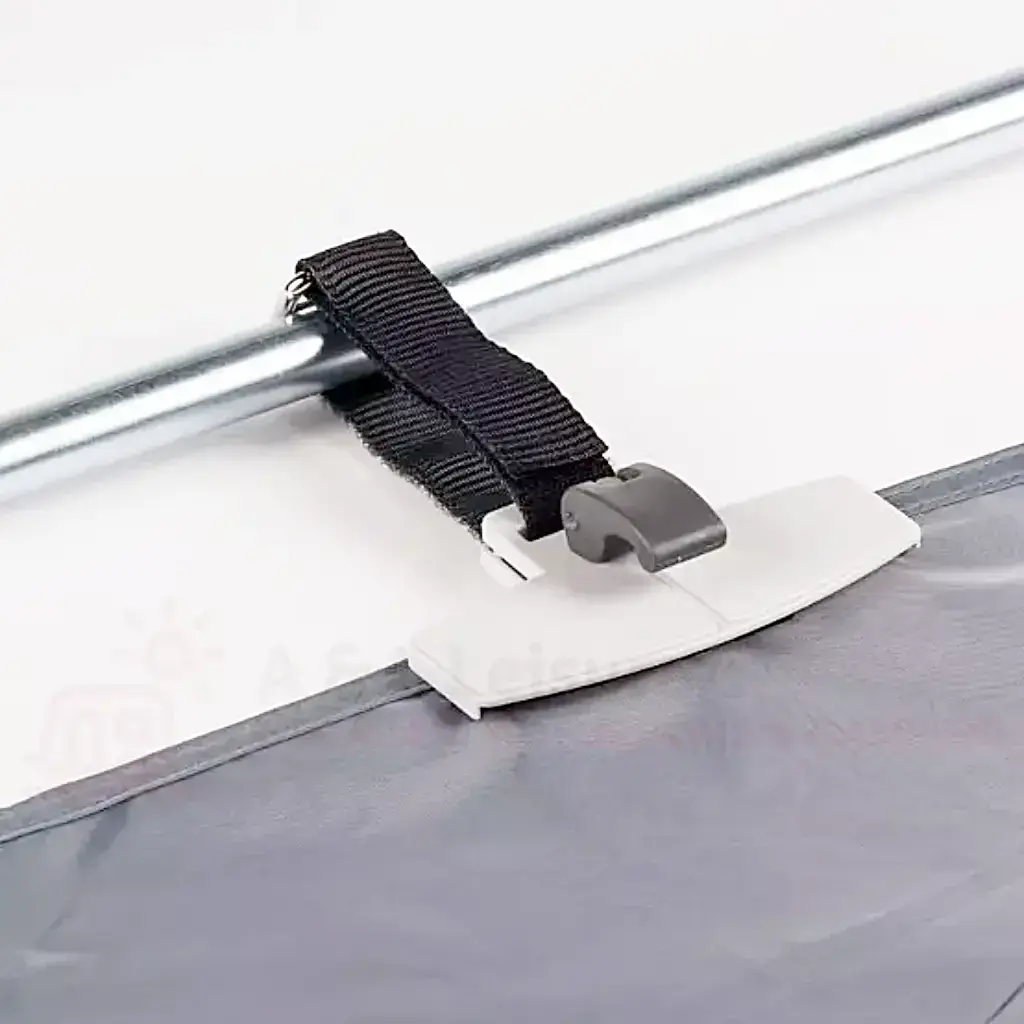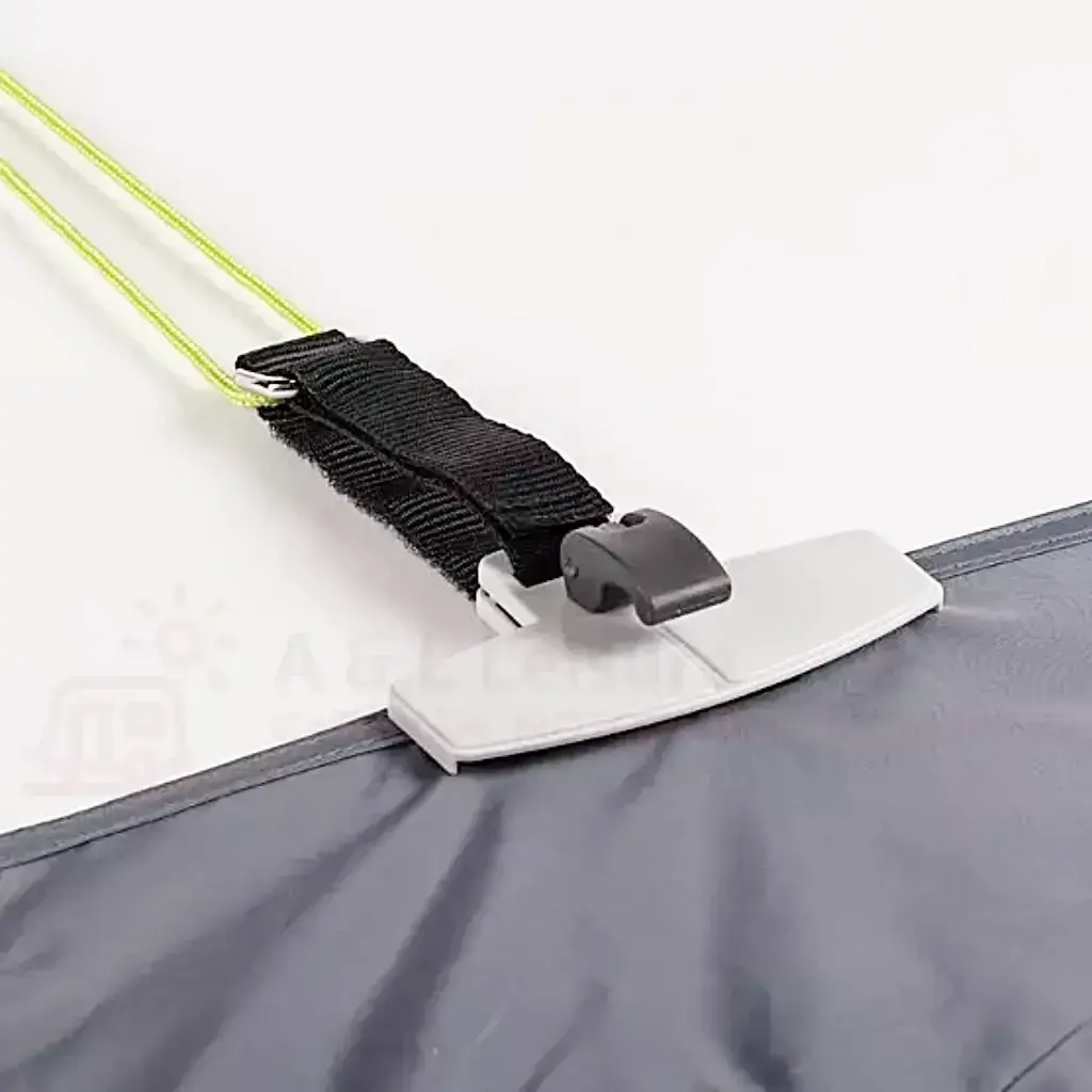 Protects the awning material from wind damage whilst preventing noisy wind flapping