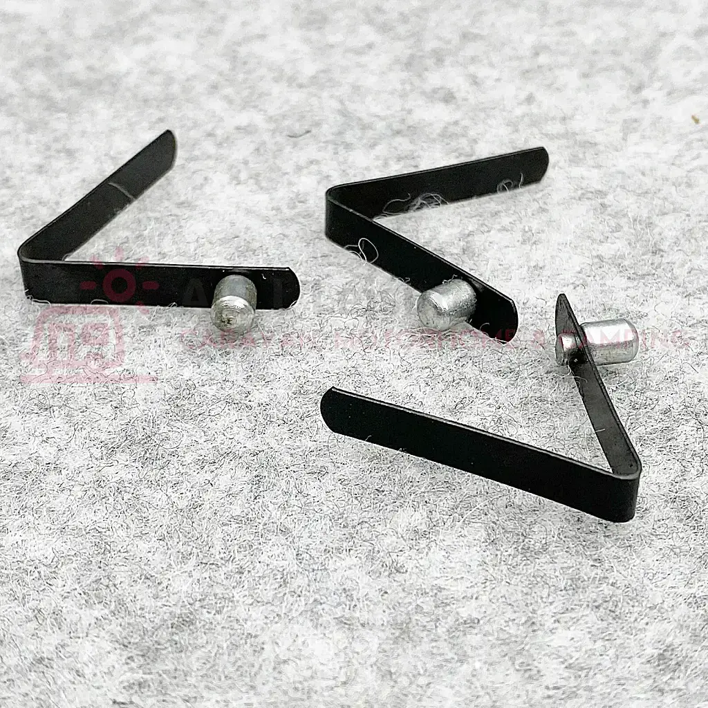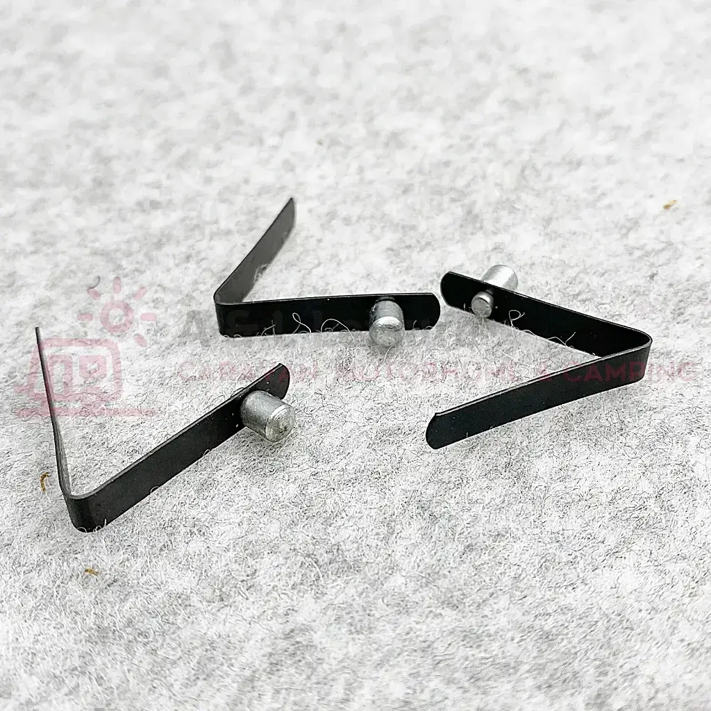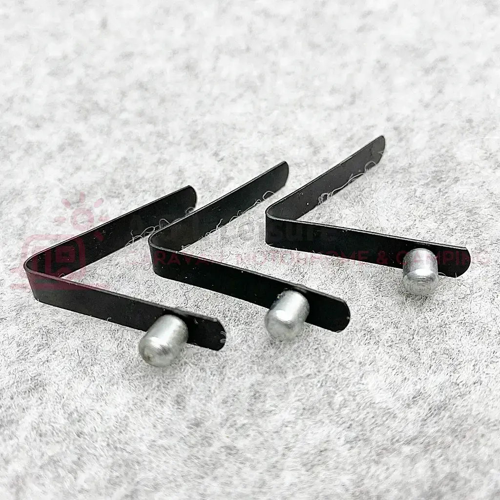 Awning and tent pole replacement spring buttons for pole joints. These W4 Spring Buttons fold and slide into the pole and push into place to locate the button hole.